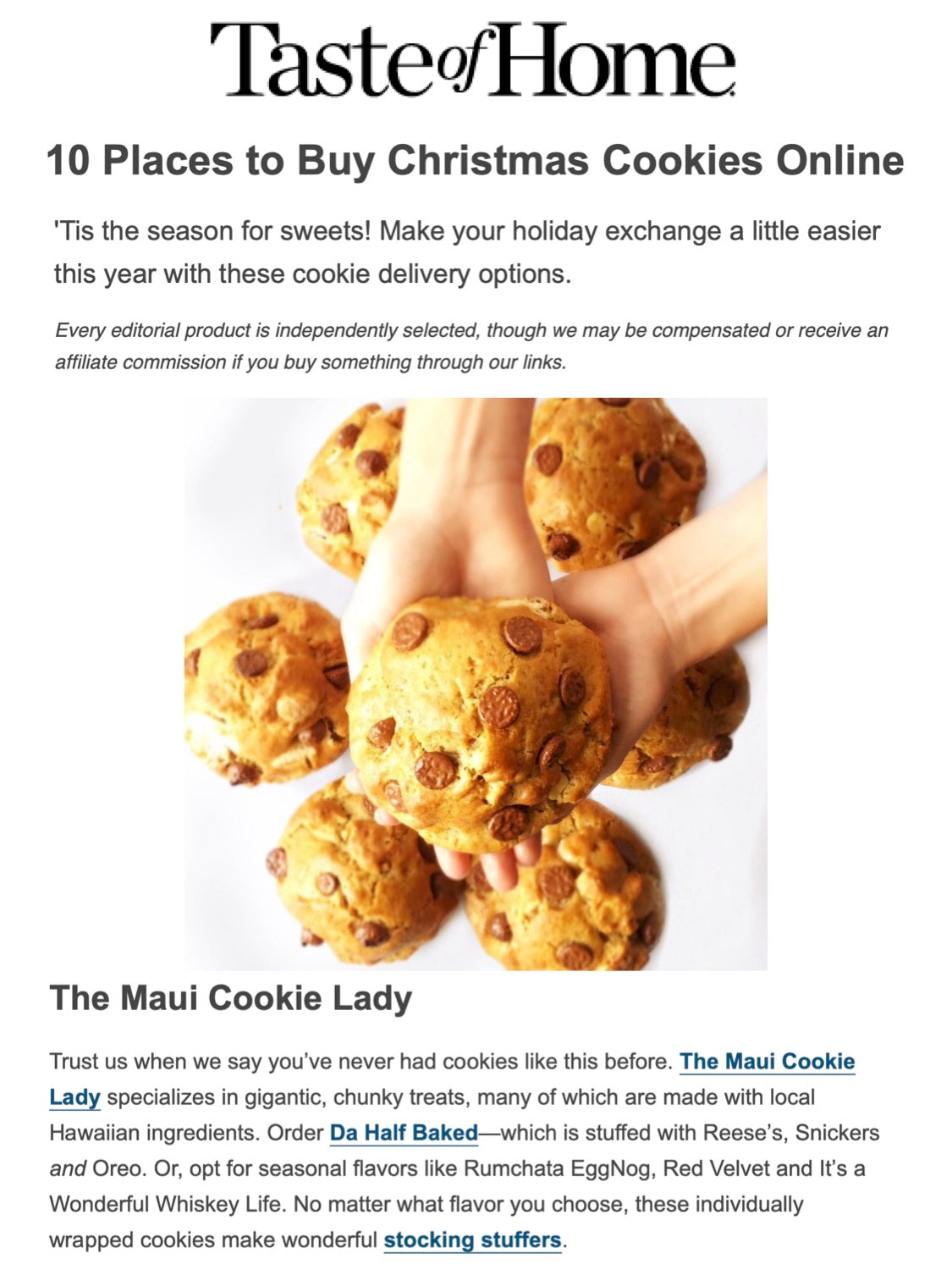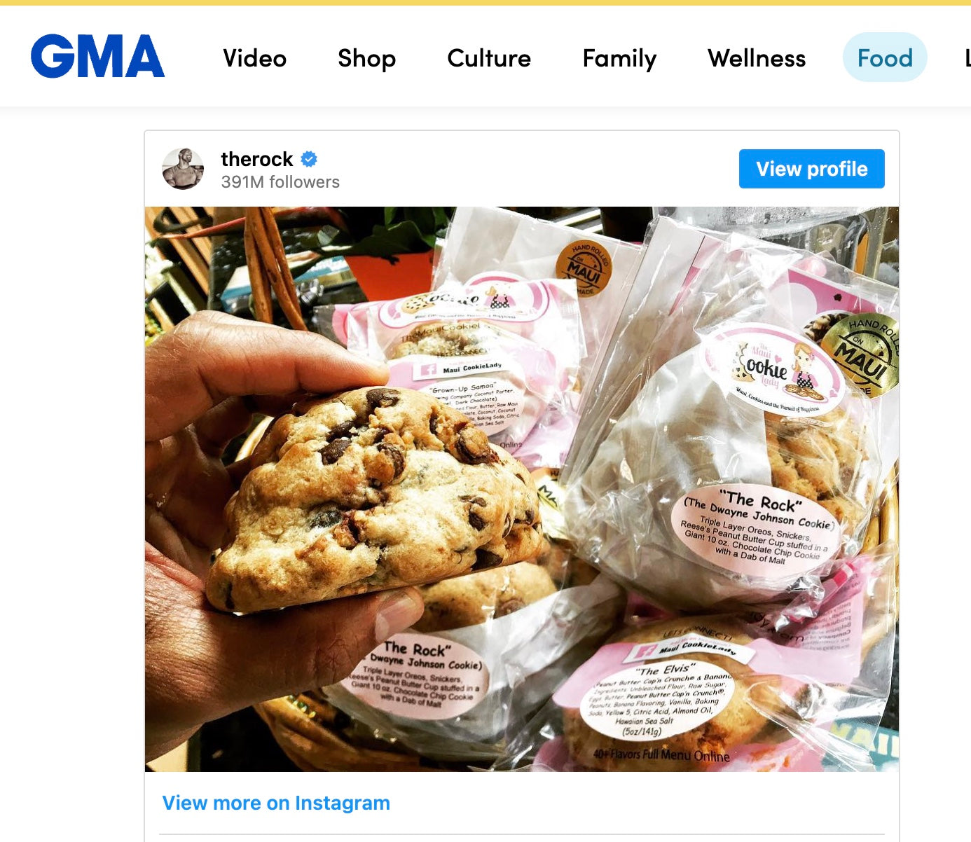 Ingredients: Unbleached/Unbromated Flour, Butter, Raw Sugar, Brown Sugar, Eggs, Reese's Peanut Butter Cups, Oreo Cookie, Snickers Candy Bar, Milk Chocolate Chips, Bavarian Vanilla Cream, Vanilla Extract, Baking Soda, Citric Acid, Corn Starch, Hawaiian Sea Salt.